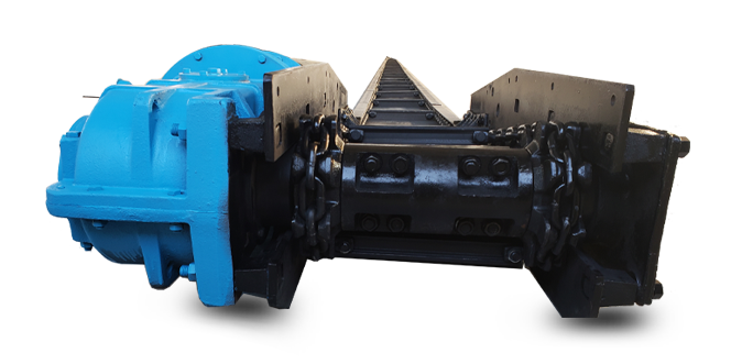 刮板輸送機的工作原理是將敞開的溜槽作為煤炭、矸石或物料等的承受件,將刮板固定在鏈條上(組成刮板鏈),作為牽引構件。